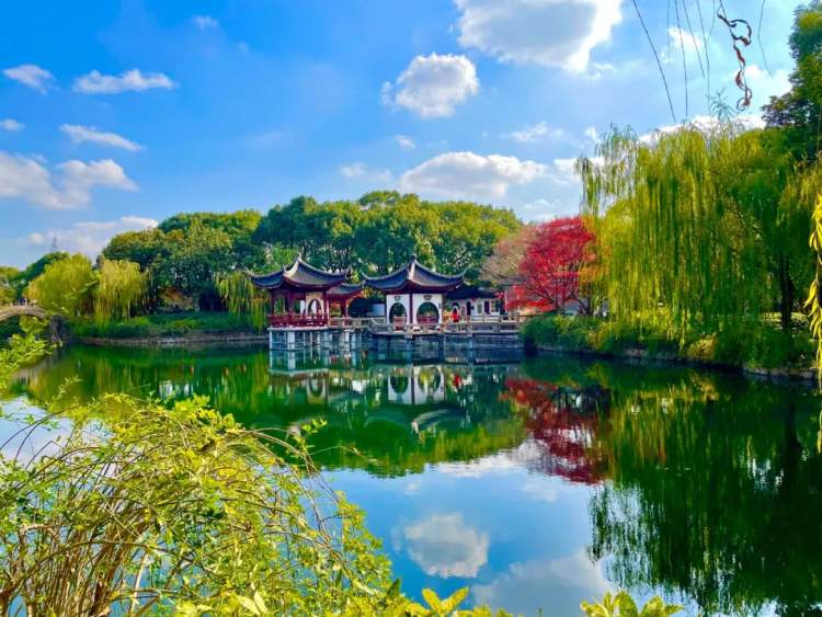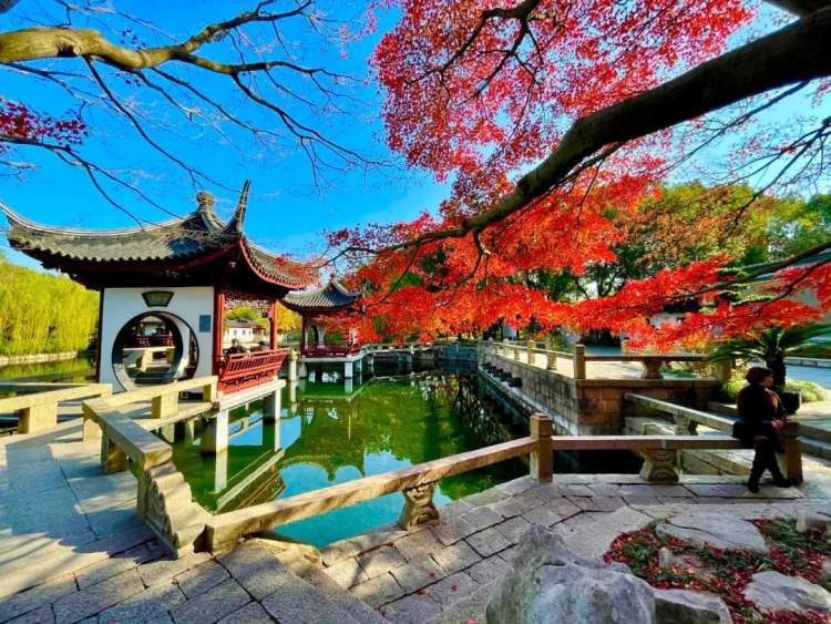 小桥碧水与蜿蜒相交的曲径长廊