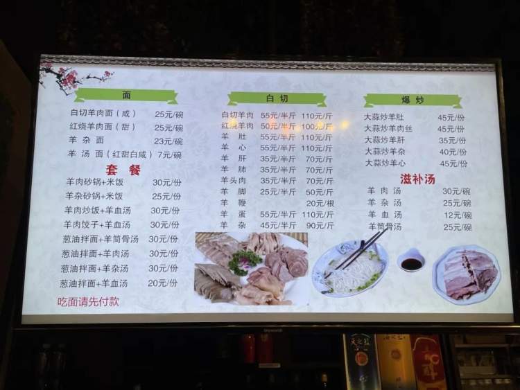 夏天做龙虾,冬天就做这一份羊肉面。此外,店内的羊肉火锅也是一大特色。