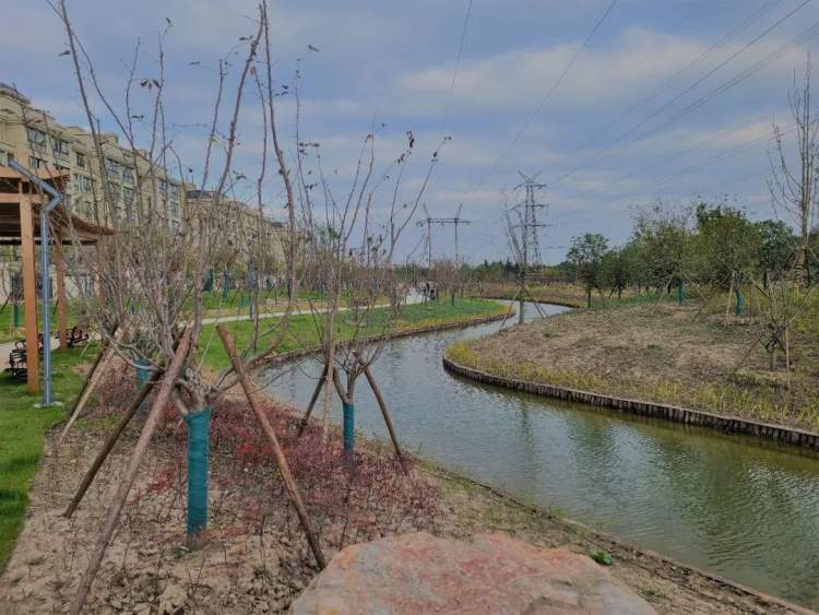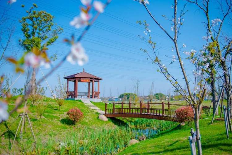 临江园公园,以“生态·田园·湿地·和美”为理念,将公园绿地与周边田园肌理相融合。通过疏通原有沟渠,营造地形和自然水系,建设疏林草地、银杏林、紫薇花带等自然景观,设置樱花步道、紫藤长廊、亲水活动场地、自然叠石、休憩座椅等居民活动设施,人与自然和谐融合,成为集湿地休闲和康体健身于一体的开放绿地。