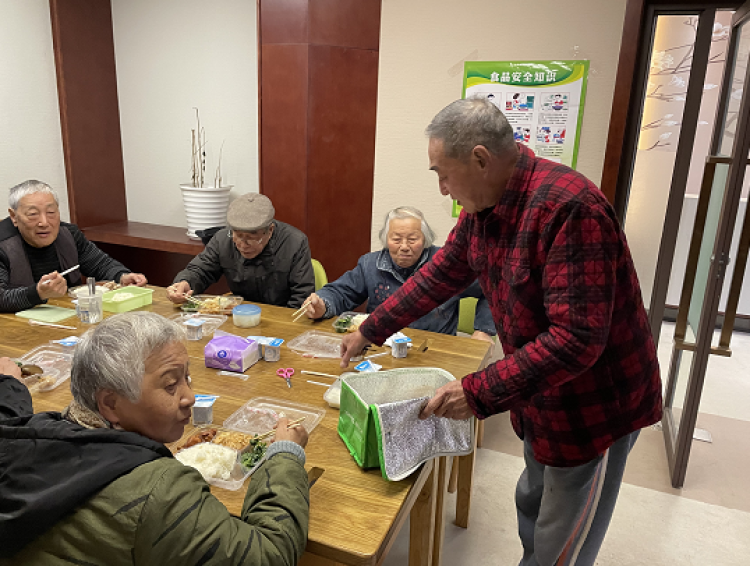 由于气温不断下降,为了保障老年人们的出行和用餐安全,金地一村居民区将原先老人们统一到社区助餐点吃饭改为全部送餐上门。