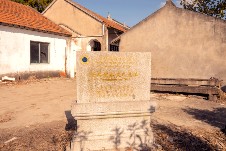 但当你走进一瞧,那石碑上明明白白的刻着:上海市文物保护单位,汤村庙古文化遗址。