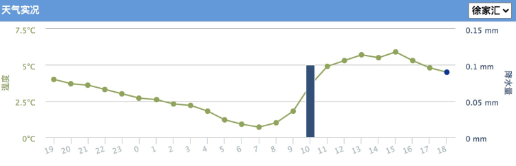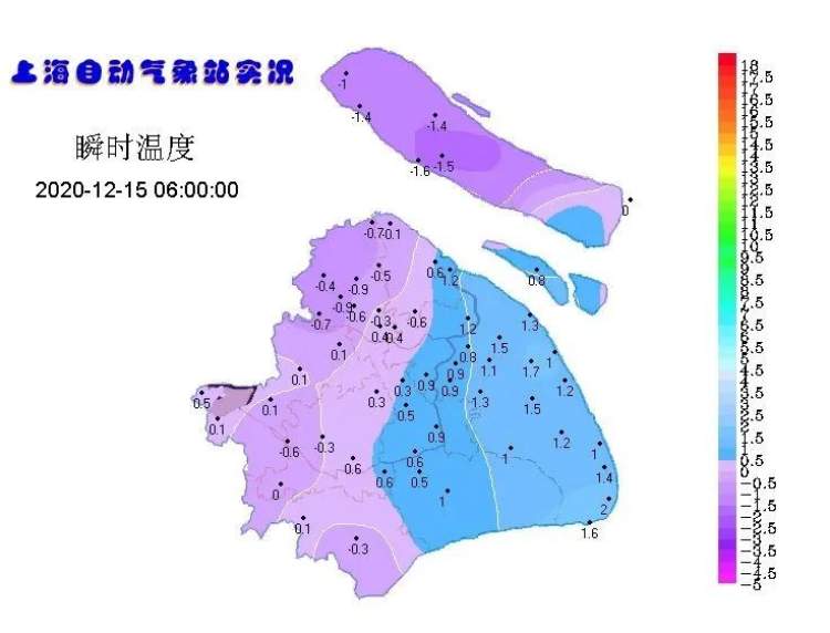 今日阳光甚好,但气温着实有点低,早间由于辐射降温作用,市区徐家汇站最低气温0.7℃,崇明、嘉定、青浦、松江、金山等区最低气温跌破冰点,崇明最低为零下1.5℃,走在户外的感受是“冻手冻脚”。