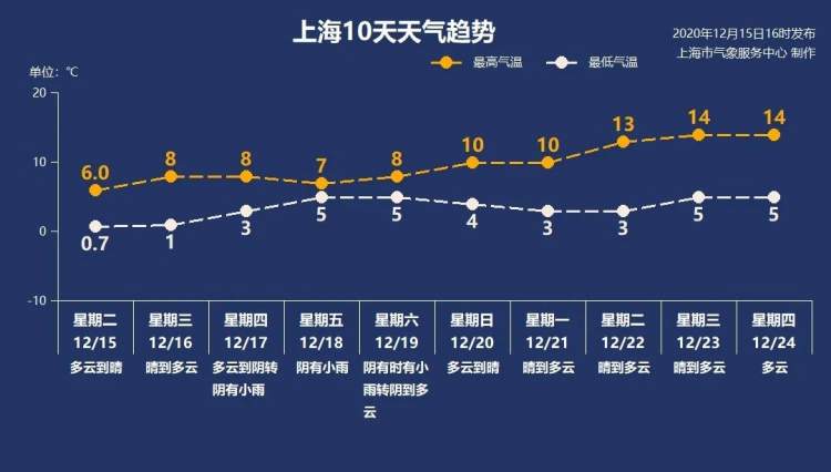 虽然大多数人是在昨天和今天才感受到寒潮威力的,但其实早在12月12日也就是上周六,申城的日均气温已经低于10℃。