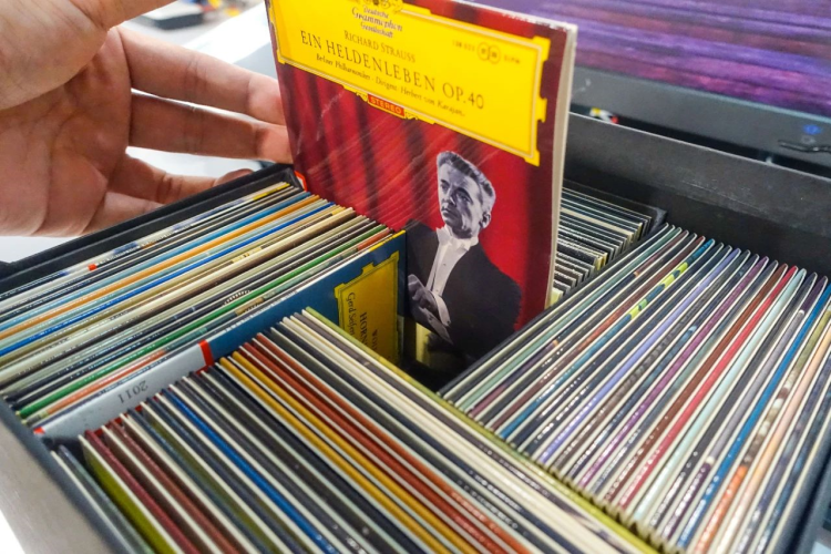 收藏级的原版CD,仅在图书馆定期开展的影音鉴赏活动中使用,读者可以在浦东图书馆的官方微信号关注相关活动信息,提前预约并参与。
