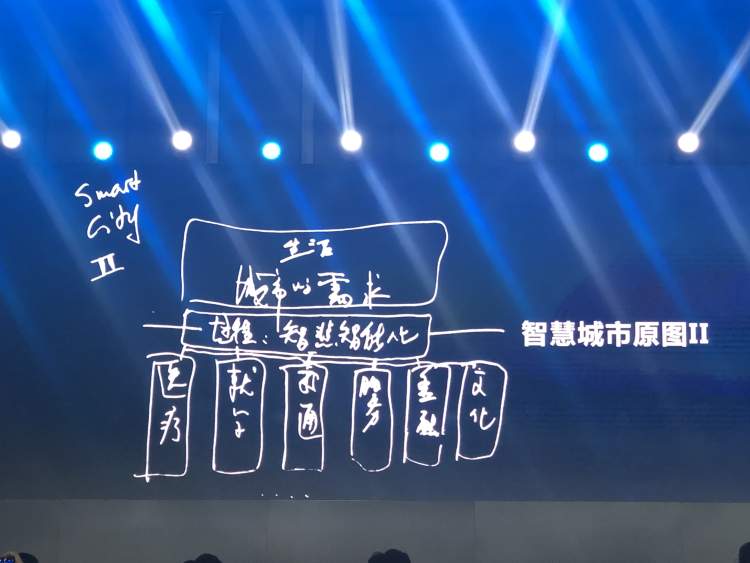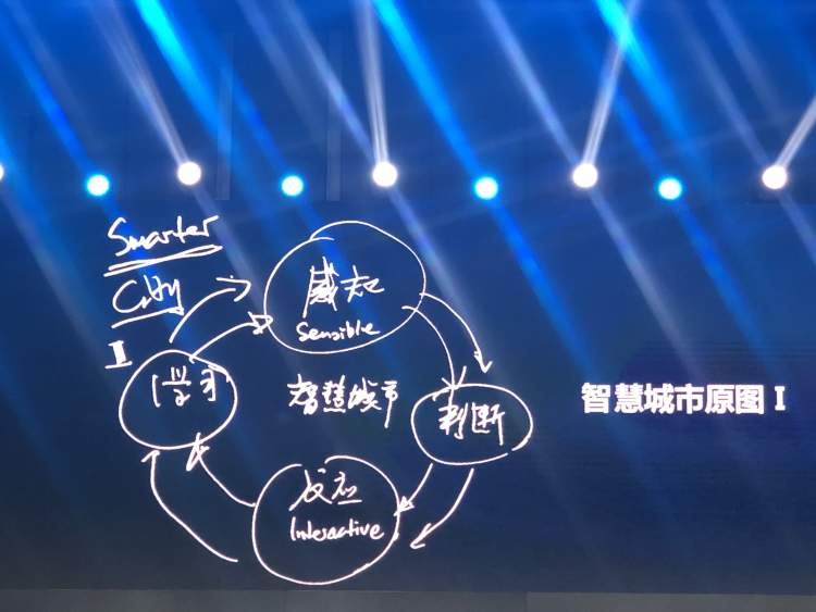 中国工程院院士、同济大学副校长吴志强回忆上海关于智慧城市规划的历程,最初吴志强绘出的智慧城市原图,城市主要能感知-判断-反应-学习;之后进化了一版,从生活城市需求出发,经过智慧和智能化的过程,能在医疗、就业、交通、政务、文化等领域满足人们生活的需求。
