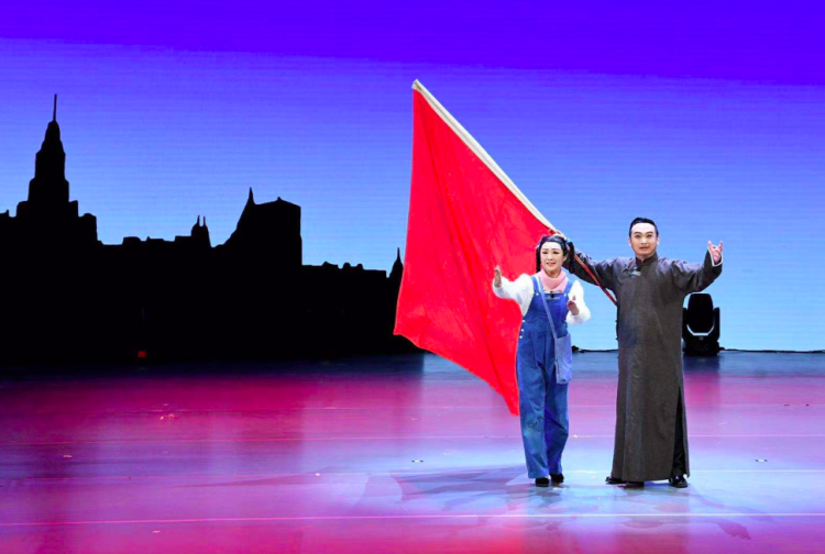京剧《解放日》通过讲述青年党员王澜英穿越敌占区与战火,最终通过电台向上海市民宣告上海解放的消息,用京剧唱段向前辈致敬;当代舞《血映桃花》通过双人舞的形式表现了年轻党员心中崇高的理想和信念,为民族独立解放,甘愿奉献己身;面对新冠疫情,上海新东苑沪剧团积极践行社会责任,创排了原创沪剧抗疫小戏《一江水 两家情》,用上海乡音乡情,表达了疫情下一线抗疫英雄们的责任与担当,讴歌生命,致敬“最美逆行者”。