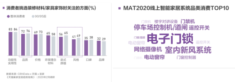 居家隔离、在家办公使得“人与家”的关系更加紧密,也激发了国民对居住空间的升级需求。当家的概念向外延伸,“人与环境”的关系也在被反思,环保和可持续理念因为疫情加速渗透。「科技感」、「品质化」成家装升级方向。