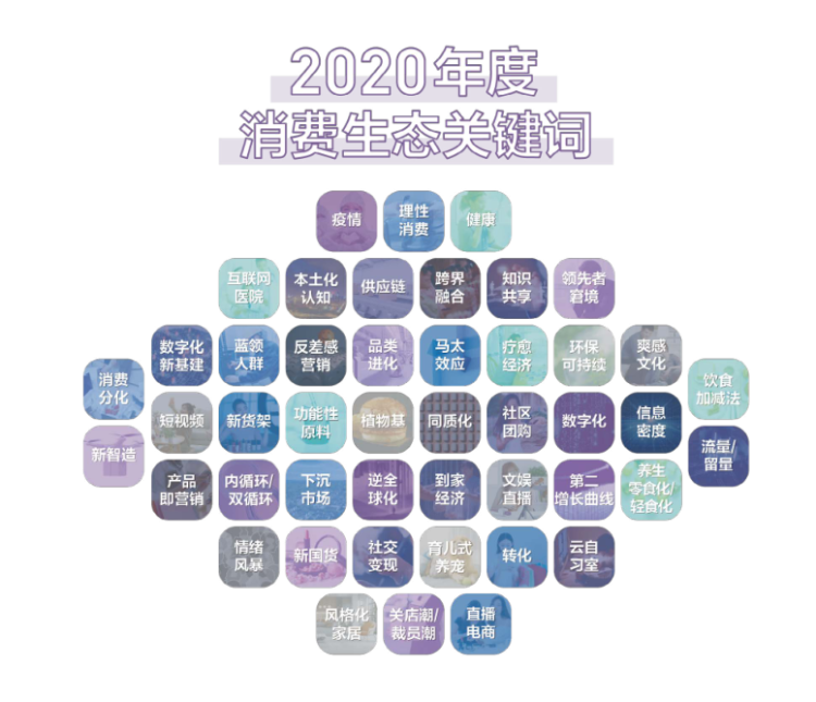 12月16日-17日由第一财经、第一财经商业数据中心(CBNData)主办的“2020第一财经数据盛典”上,CBNData发布的《新消费引领下的“风”与“变”——2020中国互联网消费生态大数据报告》显示,2020年消费生态正呈现出十大变化: