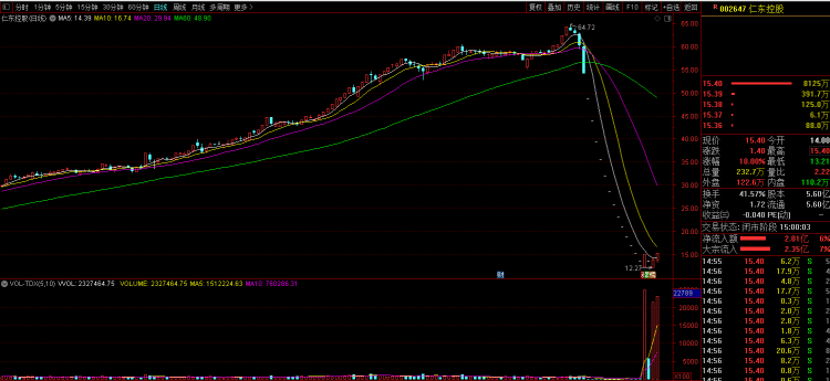 “仁东控股已经求助银行借新还旧了,说明流动资金非常紧张。游资肯站出来帮它撬板,这里面一定有很多潜规则不为外人道,但有一定是肯定的,从资金倒腾来倒腾去,这次游资不是单打独斗,而是兵团作战,估计也是为了规避监管。”高智说。他认为,像仁东控股这种连续跌停的股票,没有几个人敢下大单抢反弹,而主力也深知这点,她只是通过左右手互搏吸引胆子大的投资者冒冒失失冲进来做韭菜,但这种对倒的手法很容易被监管部门查处。