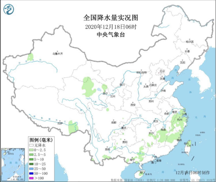从今天6时的全国降水图可见,上海那时确实有些雨。