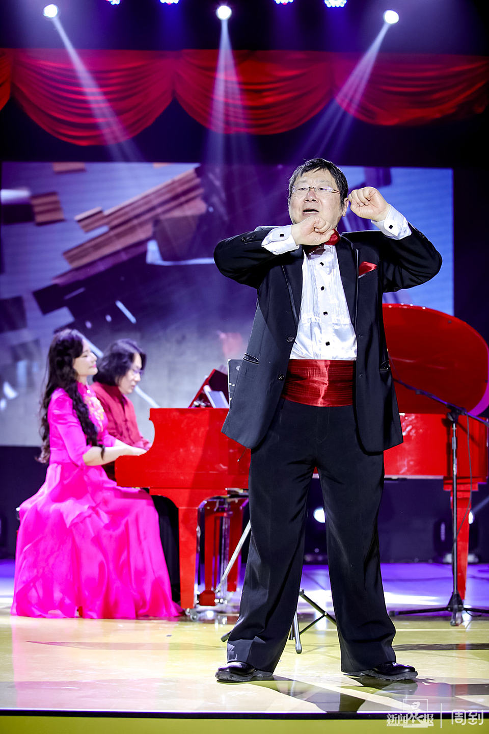 今晚(12月18日),上海中医药大学体育馆内琴声缭绕,19点,随着指挥家曹丁手中的指挥棒高高扬起,“世界同心·音乐无界”全球“云知音”网络公益钢琴大赛颁奖典礼暨新年音乐会正式开启,舞台中5架钢琴、1台直径超过2米的中国鼓发出令人震撼的音响效果。