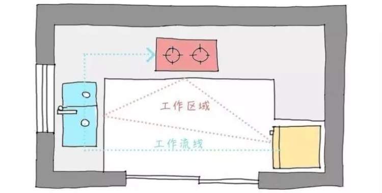 如果两边较长,中间短,可以把水槽放在中间的位置,两边分别是储藏区和加工烹饪,如果两边短中间长,那就把灶台放在中间,两边分别是储藏水槽和备餐加工区。