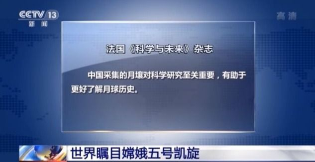 法国知名科技杂志《科学与未来》在其官方网站上表示,中国采集的月壤对科学研究至关重要,有助于更好了解月球历史。