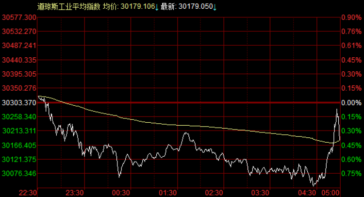 隔夜,美股三大指数集体平开盘后一路震荡走低,不过,尾盘30分钟交易时段(见下图),多头奋力拉升,收复超一半失地,三大指数最终小跌收盘。