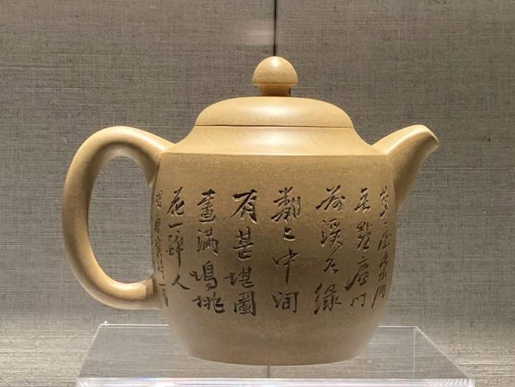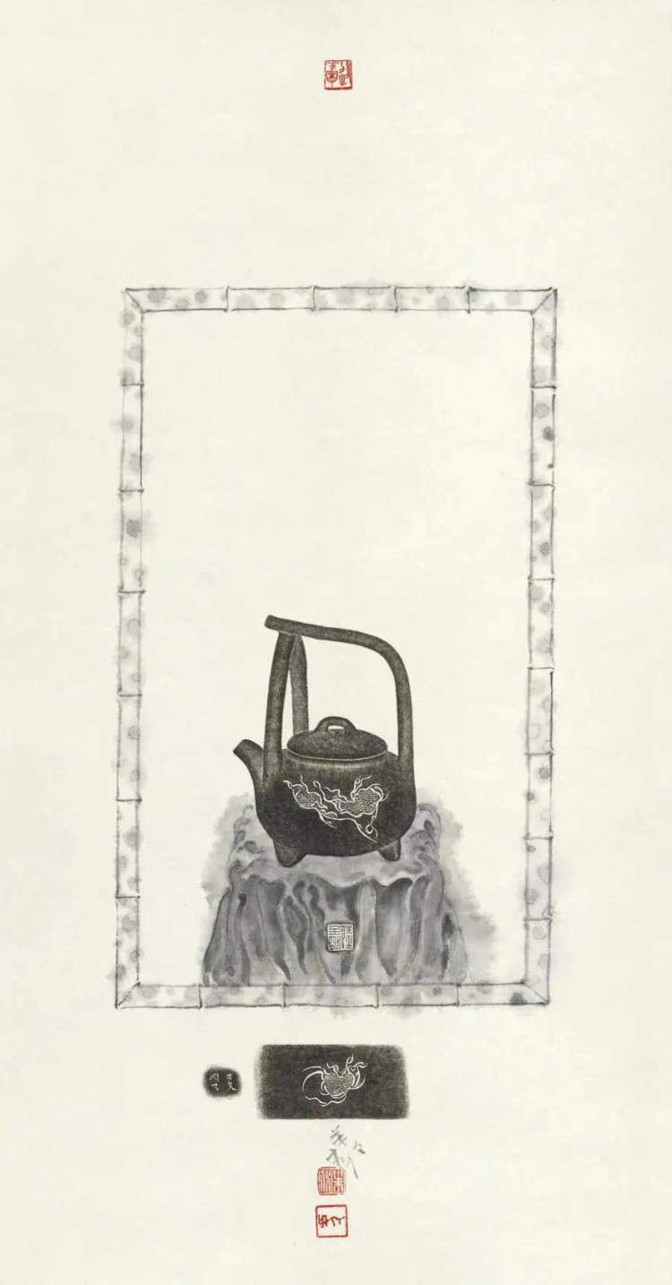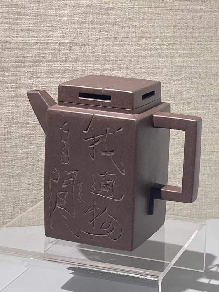 中国汉画学会会长、中国国家博物馆原副馆长陈履生主张画自己的画,读自己的书,论自己的理,走自己的路,因此他的文人壶创作充满了个性,精彩的书法与茗壶相得益彰。