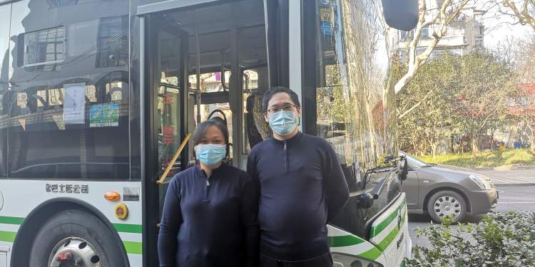 973路驾驶员成杰、售票员符乐奕是一对夫妻,也参加了接种
