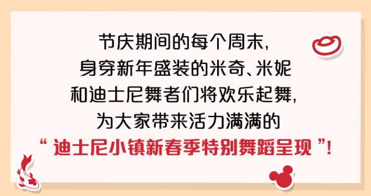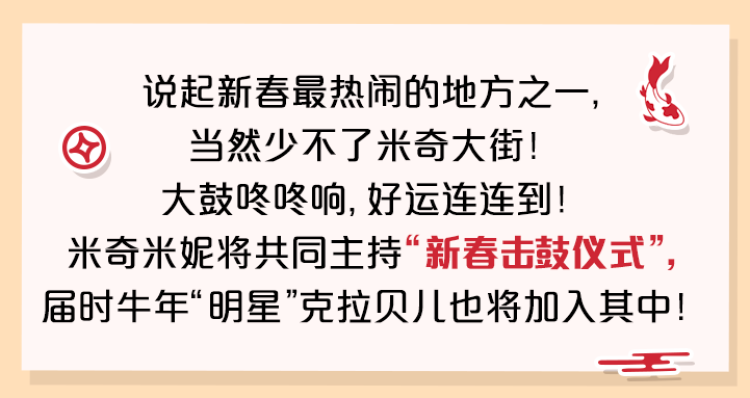 米奇大街上的小可爱们都换上了年味儿十足的节日新装,给游客送上暖暖祝福。