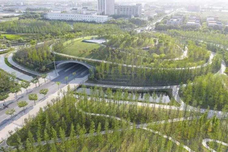 绿地里还有上海难得一见的“山”,只不过是人造山。原来,这片总长1.6公里的大型绿带,通过三个地上或地下隧道横跨了古浪路、常和路、沪嘉高速三条大马路,游客不用过马路就能无障碍穿行绿地。其中,古浪路隧道上方的绿地坡度,由泡沫混凝土、轻质EPS材料和1.5米高的土壤层铺就,形成了视野更好的坡地,也充分考虑到了隧道的核载。登上古浪路隧道上方的小山,整片绿地的景观收入眼底,令人心旷神怡。空气足够好的时候,这里还能极目数十公里,看见陆家嘴的三座高楼。绿地的另外一大亮点,是一座3D打印桥,对游客也是一大吸引点。