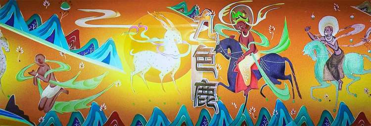 作为海派皮影系列之二,《九色鹿》进一步升级了多媒体与皮影的融合,突破传统技术瓶颈,用有色和可调控分区光源在皮影画布上实现敦煌瑰丽色彩。