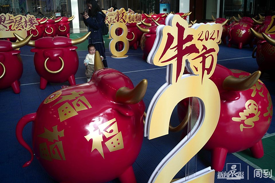 红红的福牛,祝你牛年红红火火 | 晨镜头 任国强 2021-2-03 来源:周到上海 为迎接新春佳节,各大超市商场布置得红红火火、喜气洋洋,为市民打造沉浸式的春节场景,营造平安祥和的过节氛围。 曲阳路上一家商场在6楼中庭呈现大型“牛生百福”打卡点,66大红头福牛占据六楼中庭,排出各种数字造型,牛身上的100个福字组成新春美陈。 穿梭在66头福牛牛市中,不管是拍照凹造型还是扫“福”字、“集五福”,尽享“牛市”带来的美好寓意,祝福来年都可以“牛气冲天”! 来源:周到上海 作者:任国强 赞一个 (0)