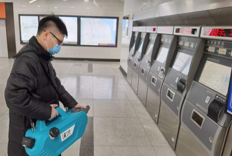 “原先人工消毒时,因地铁车站面积较大,工作人员人工消毒时间较长,喷洒水壶需要反复装取,且可能有喷洒不到位的死角及缝隙,所以一次消毒大多要覆盖两遍喷洒,才能达到全面消杀的效果,大大增加了车站员工的工作量。” 17号线诸光路站站长梁思乐告诉记者。