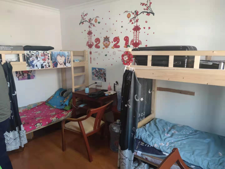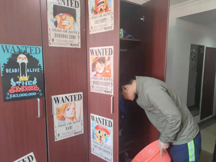 洁白崭新的墙面,木质的床和衣柜上贴满了各种动漫海报,王丹和同事一起租住在这里,他们俩都是动漫爱好者,平时会一起看电影、玩手游。