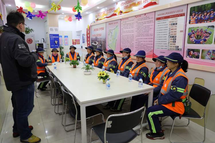 巾帼文明岗道清班组共有女职工29人,全部是外来务工者,最远的来自四川和贵州。她们负责虹口足球场及鲁迅公园周边4.7万平方米的道路清扫和环境保洁工作。今年春节,道清班组职工积极响应“就地过年”号召,放弃了与家人团聚的机会,为确保疫情防控万无一失、让城市居民干干净净过个年做贡献。