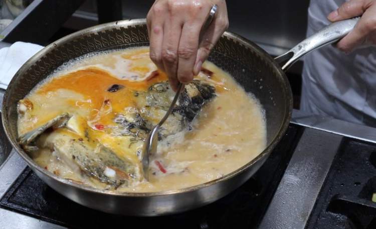 鱼头要油煎至金黄色,再注入鱼汤或开水(不能用冷水),这样煮出来的鱼汤会是香浓的奶白色;