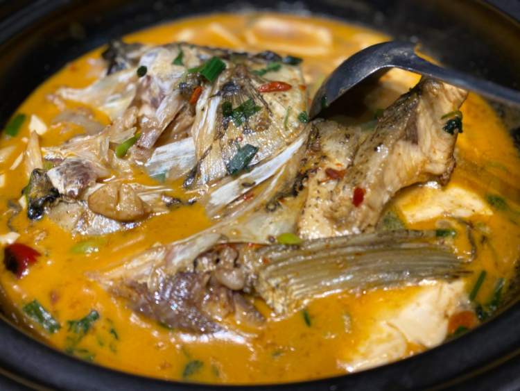 煎过的鱼头配上鱼汤,加入嫩滑的豆腐……味道鲜美,香而不腻。鲢鱼头富含蛋白,脂肪和热量都很低,搭配豆腐食用温中暖胃、营养丰富,适合全家老小。