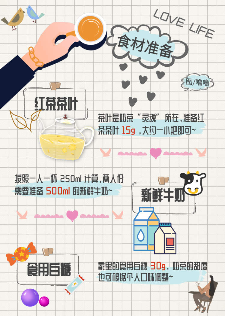 茶叶是奶茶“灵魂”所在,准备红茶茶叶15g,可用茶包替代;