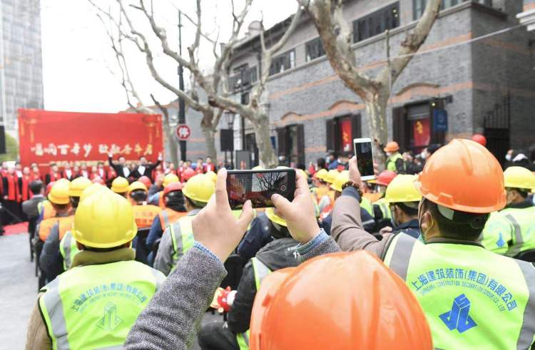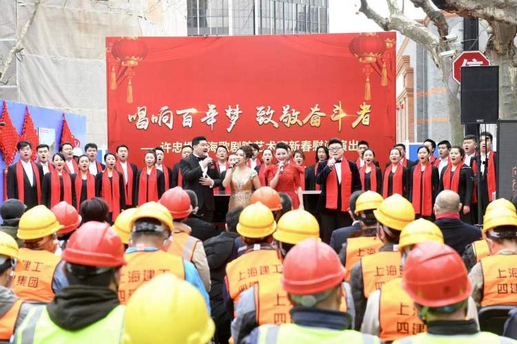 与这个冬天的数次寒潮形成鲜明对比,“一大”纪念馆的建设施工始终热火朝天,为了确保按期完工,同时也积极响应“就地过年”的倡议,很多工人选择留在上海过年。为了让大家能在工地里感受到春节的暖意,上海歌剧院与“一大”纪念馆共同牵头,将舞台搬进了工地,促成了这一次的慰问演出。