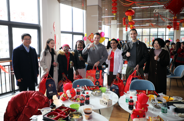 2月10日农历腊月二十九,在欢乐喜庆的新春音乐声中,校领导、老师们与同学们共进午餐,分餐分食“程园全家福”小火锅,并配有美味水饺、特色小吃、精致点心、水果。校领导们还为留校学生送上“新春大礼包”“防疫物资大礼包”“新年吉祥物”。