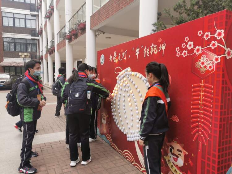 开学不久后,也将迎来元宵节,开学首日,校园中开启了特殊的“点灯”活动,让学生们感受传统文化。许许多多个小灯笼,由学生们点亮,组成一个大灯笼的形状。