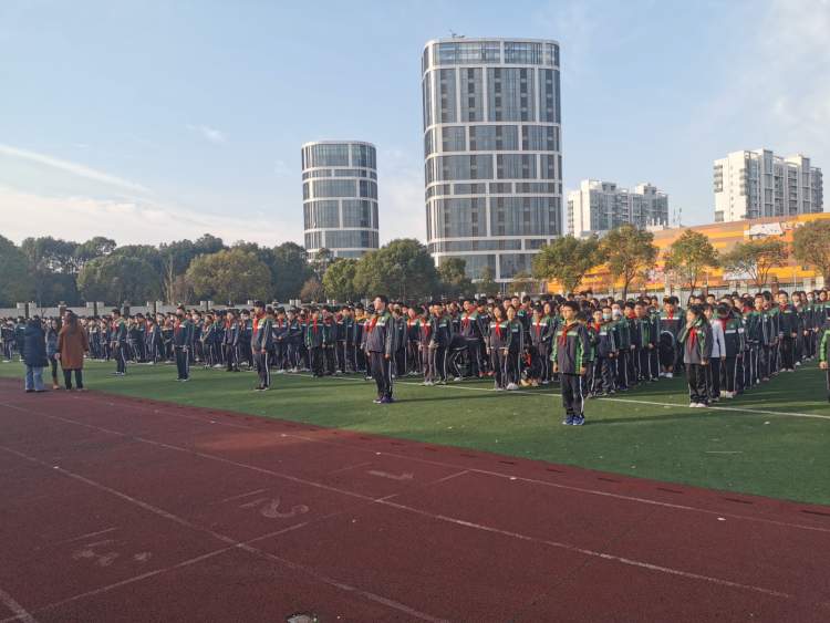 全体师生在操场上举行开学典礼,在原创的诗朗诵《经天纬地 筑梦未来》中,拉开新学期序幕。