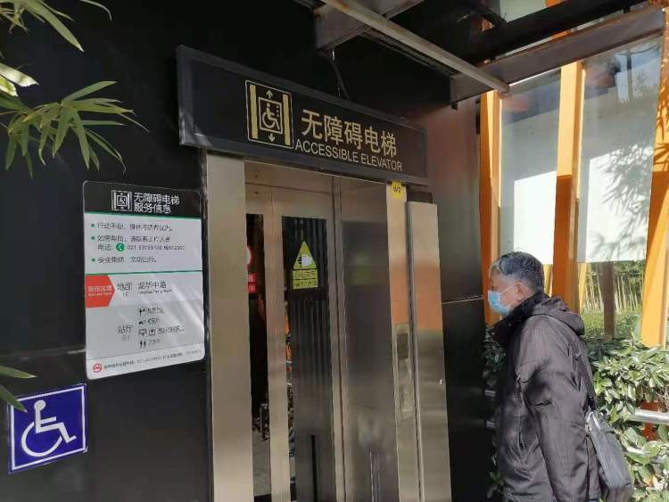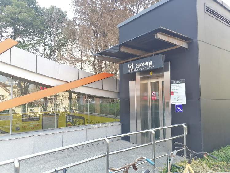 肇嘉浜路站无障碍电梯连接着地面与站厅