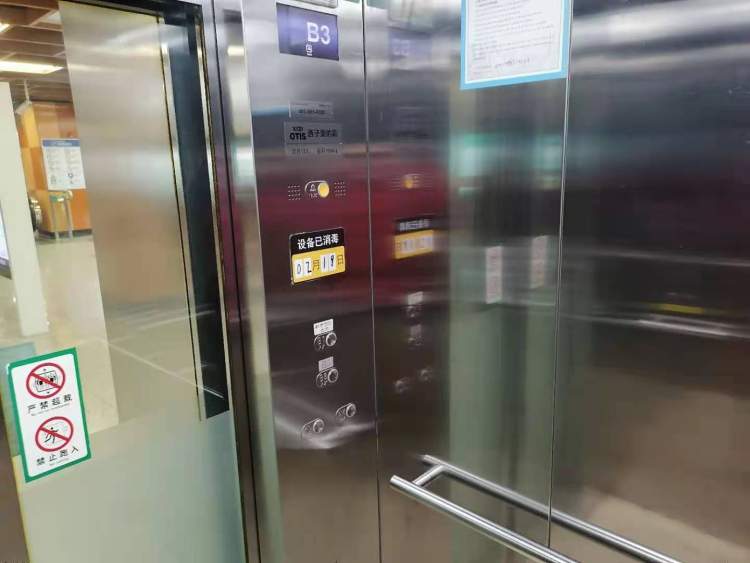 上周五下午,无障碍电梯里可看到当天的“设备已消毒”记录