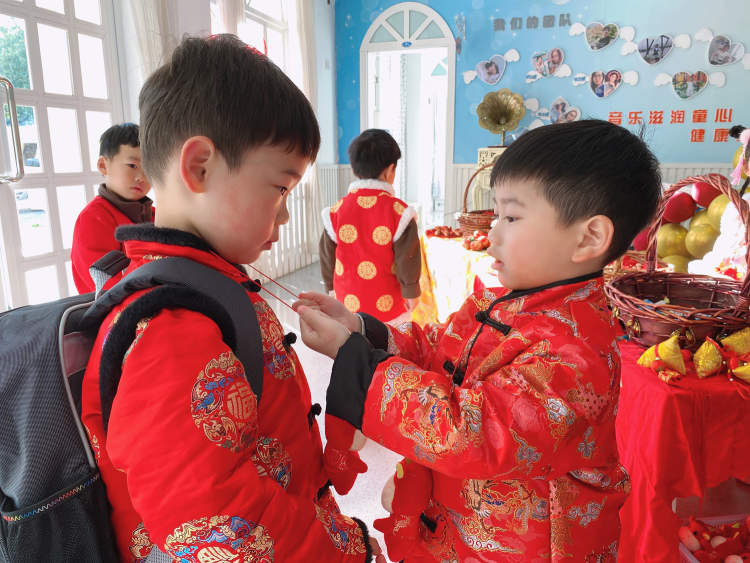 为了展现新年新气象的美好传统,帕堤欧幼儿园新学期第一天教师和孩子们一起穿上象征吉祥、喜庆的唐装,在布置一新的幼儿园里开展了寓意丰富的“四个一”民俗活动。