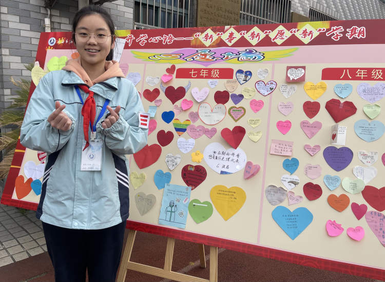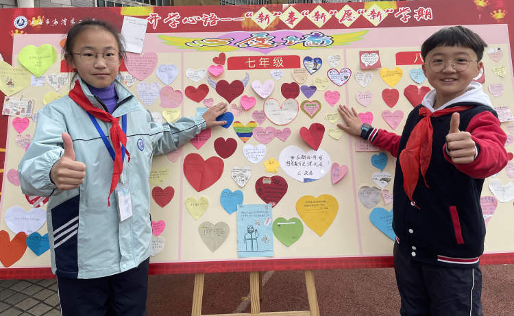 新学期开学第一日,海滨二中大队部组织主题为“新”事“新”愿“新”学期开学心语活动。