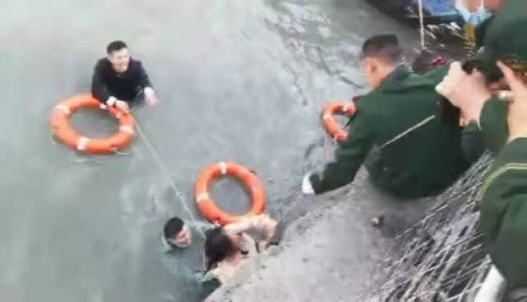 见此情形,中队长戴伟也随之跳入江中,利用绳索和陈留强一起将女子往岸上推,岸上的官兵奋力将女子拉起,女子终于得救。