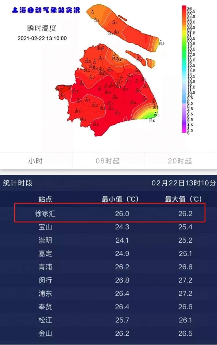 上海今天局部地区竟超过29℃?注意!冷空气即将抵达市区 徐妍斐 2021-2-22 来源:周到上海 锋前增温!今天徐家汇的最高气温达到26.2℃,是2月下旬的同期历史第二高,仅次于1921年2月27日的28.5℃。 从自动气象站来看,青浦有地方超过了29℃,超过28℃的也不少,离30℃看上去仅“一步之遥”。 不过,升温也到此为止了! 不过冷空气已到达本市北部,崇明一小时内气温下降了9.3℃,色块瞬间由红转绿。 预计还有一小时左右,冷空气到达市区,风力大增、气温下降…… 气象部门提醒,朋友们,厚外套穿穿好! 来源:周到上海 作者:徐妍斐 赞一个 (0)