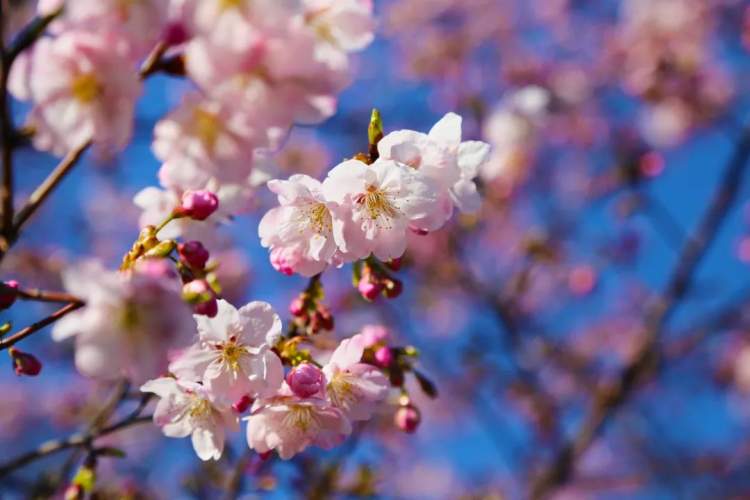 宽泛地把樱花分为早樱和晚樱,早樱在4月初(春分时节)开花,晚樱在5月初(清明时节)开花。早樱大多为单瓣多,晚樱大多为重瓣。现在气候越来越暖了,早春两三月就已开花,可以作为春天的象征。