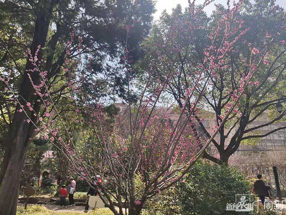 自从2018年,35株红梅、68株美人梅在松鹤公园各个角落安家后,便成了松鹤公园的游园特色。
