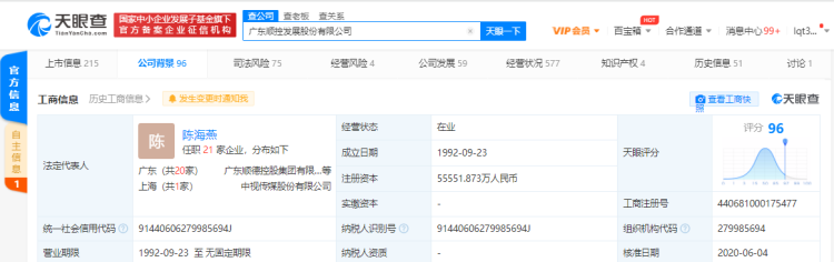 天眼查数据显示,顺控发展成立于1992年9月,公司注册资本55552万元人民币,法人代表陈海燕。公司主要从事自来水制售、供排水管网工程和垃圾焚烧发电。公司2020年营业收入123419.52万元,同比增长4.05%,净利润26794.40万元,同比增长13.68%。公司2021年1季报业绩预增,净利润4955.38万-5209.51万元,同比增长3.88%-9.20%。