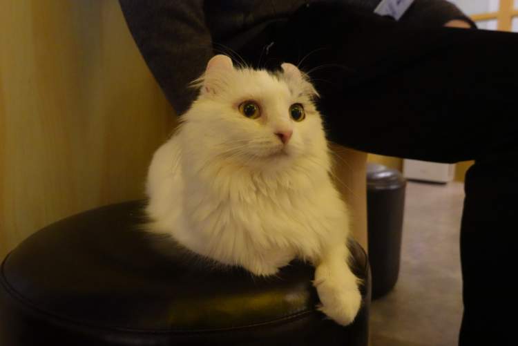 她们都是第一次来到这家猫咖,其中一个带着猫耳朵的小姐姐告诉周到君,她一直喜欢猫,无奈家里已经养了只狗子,所以没办法养猫……对她来说,偶尔能泡在这样的猫咖里,撸撸猫已经很满足了~