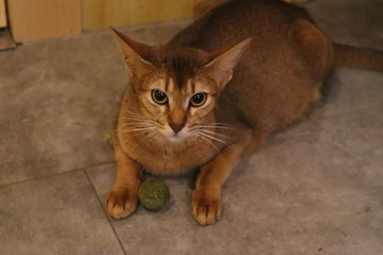 先来看我们的女王大人!妮娜是一只阿比西尼亚猫,三角形的脸,瘦削的体型,让它看起来就像一尊从古埃及穿越过来的雕塑。