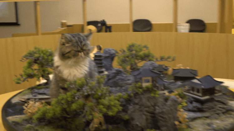 如果你遇上了每天五点的开饭时间,便能看到一排猫各就各位,在自己的餐盘里吃饭的盛景了。要论有趣在哪,店员笑着说:“都觉得边上的饭好吃”。