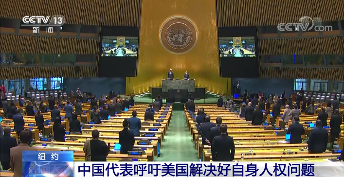 中国常驻联合国副代表戴兵在大会发言中指出,在美国,数千万的非洲人后裔仍然遭受着各种歧视和不公,自由和平等对他们只是空洞的法律条文。此外,针对亚裔人群的暴力事件也大幅增加。希望美方切实采取行动,着力解决本国的人权问题。