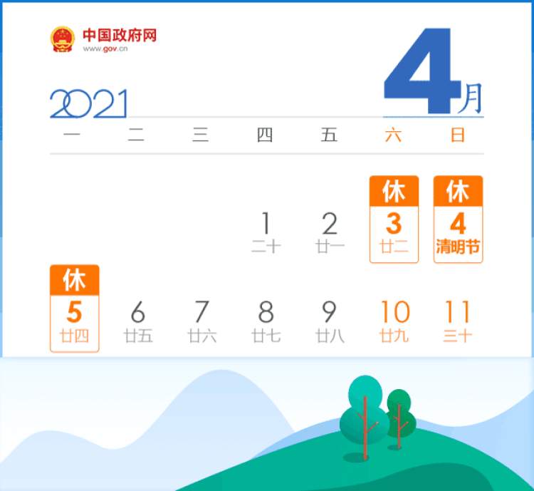 清明节假期为4月3日至5日,共3天。节日期间高速公路实施7座以下(含7座)客车免费通行,免费通行时间为:2021年4月3日0时-2021年4月5日24时。