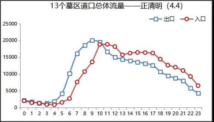 预计正清明当日通往主要墓区的13个收费道口时变特征呈现单峰特征,届时早晨6点-上午9点为墓区方向祭扫出行高峰,早晨8点至中午12点为由墓区返程的出行高峰。
