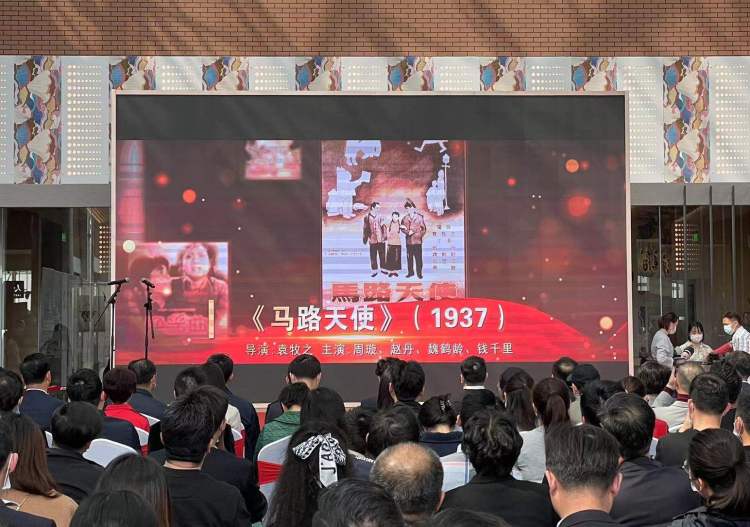 今天下午,曲阳百联购物中心6楼中庭内,雄壮的国歌声在这里响起。伴随着激昂的《义勇军进行曲》,由上海市电影局、虹口区委宣传部联合举办的“红色光影的初心启航”左联电影展映月正式开幕。